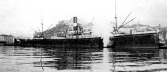 Built by Russell & Company, Port Glasgow, Scotland, 1909. 5,452 gross tons; 400 (bp) feet long; 52 feet wide. Steam triple expansion engines, twin screw. Service speed 14 knots. 1,325 passengers (50 first class, 75 second class, 1,200 third class).