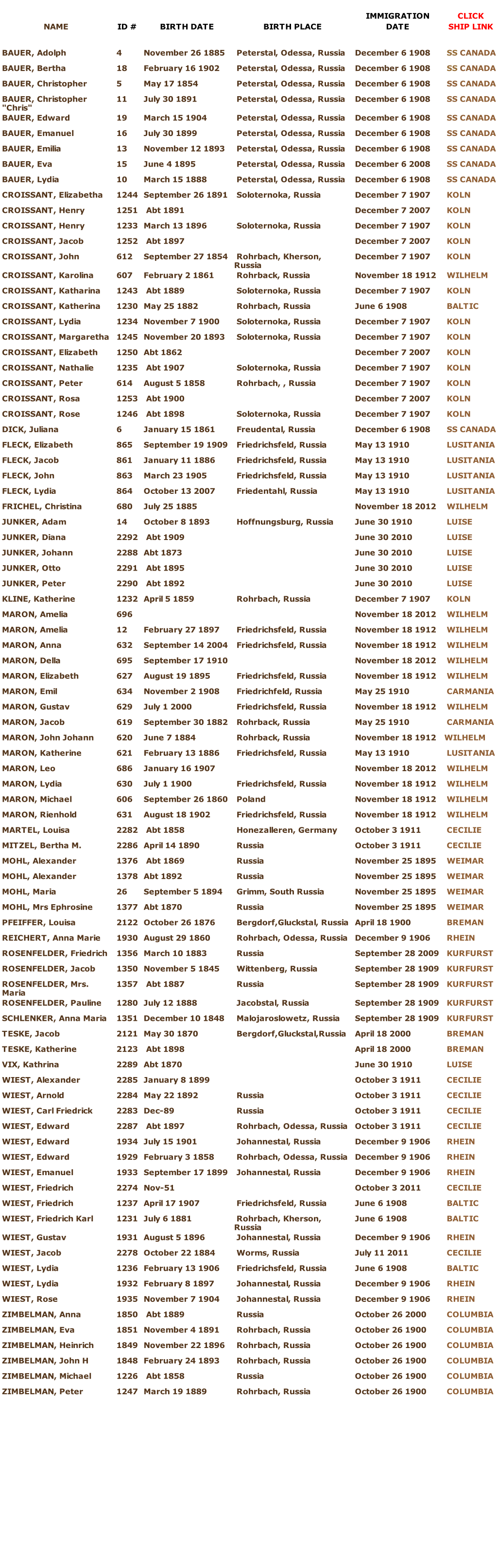 MASTER LIST